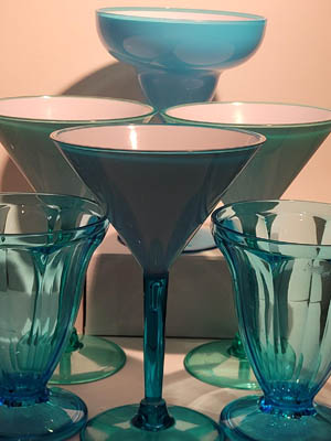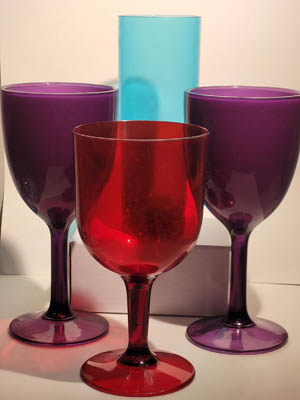 We have wine, highball, tumblers & cocktail plastic glasses for children’s tables, and for people who would feel nervous handling vintage glasses, these are ideal. This collection is growing but for now we have limited colours of pink, rainbow, purple, black and blue.