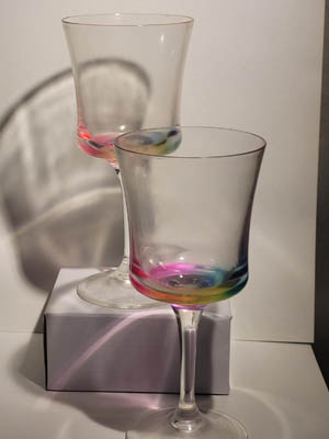 Hire costs: Wine Glasses 60p each. Champagne Flutes 30p each. Cocktail 60p. Tumblers 40p. Highballs, 40p. Shot glasses at 30p each.