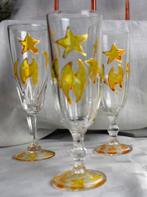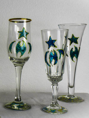 There are several choices for hand painted glasses. Champagne flutes divide into 3 categories.